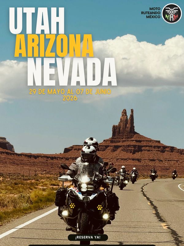 Del 29 DE MAYO AL 07 DE JUNIO 2026, únete a la ruta Utah Nevada Arizona y recorre 3000 km atravesando los desiertos más espectaculares de Arizona, Nevada y Utah.
