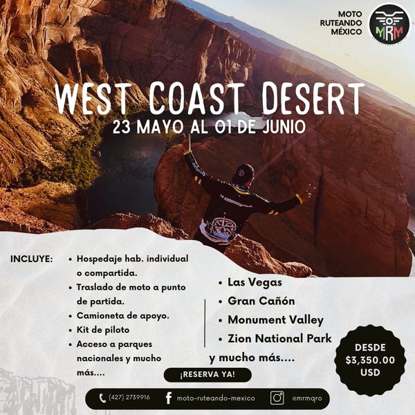 Del 23 de mayo al 01 de junio, únete a la ruta West Coast Desert y recorre 3000 km atravesando los desiertos más espectaculares de 🇺🇸 Arizona, Nevada y Utah.
